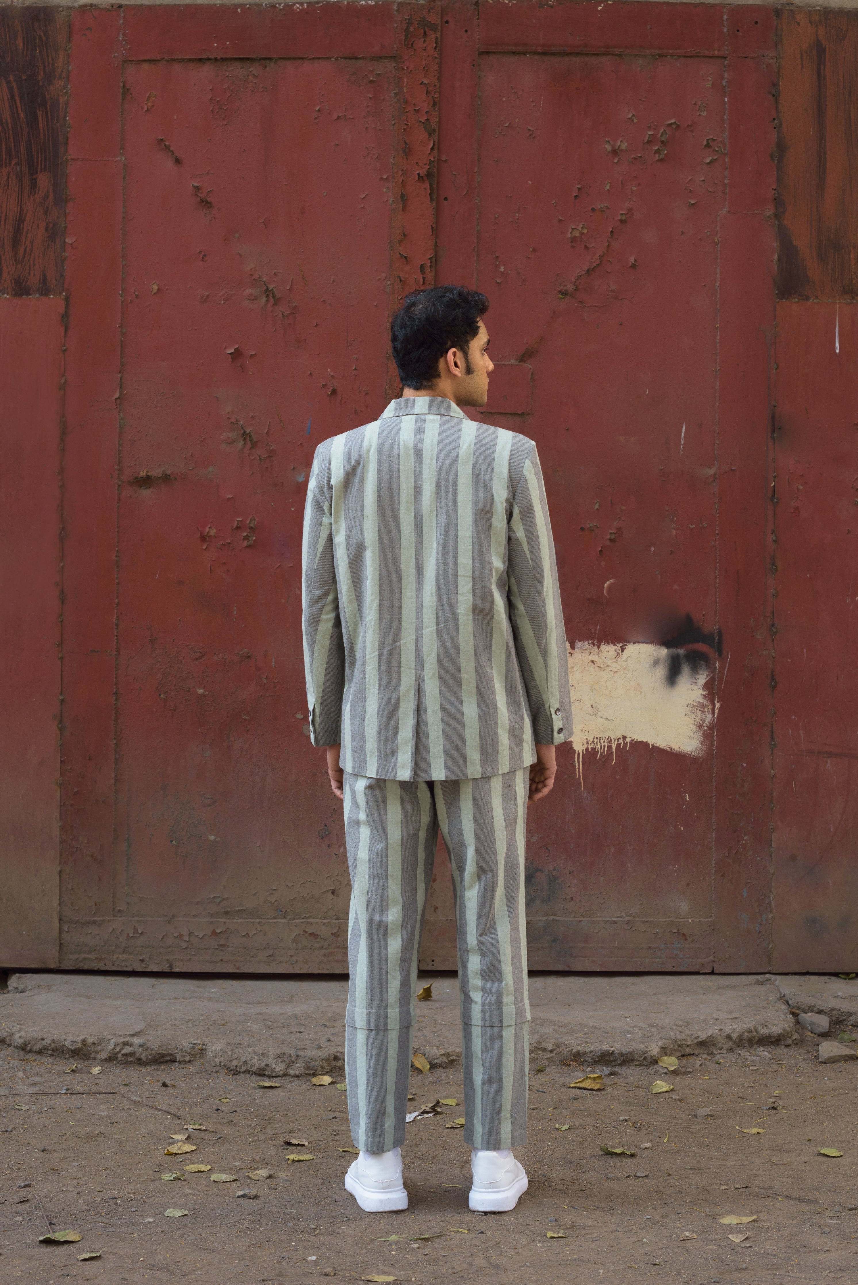 Description: Relaxed and modern feel in these straight fit striped pants. Drawstring waist for desired fit. Slash pockets. Back welt...
