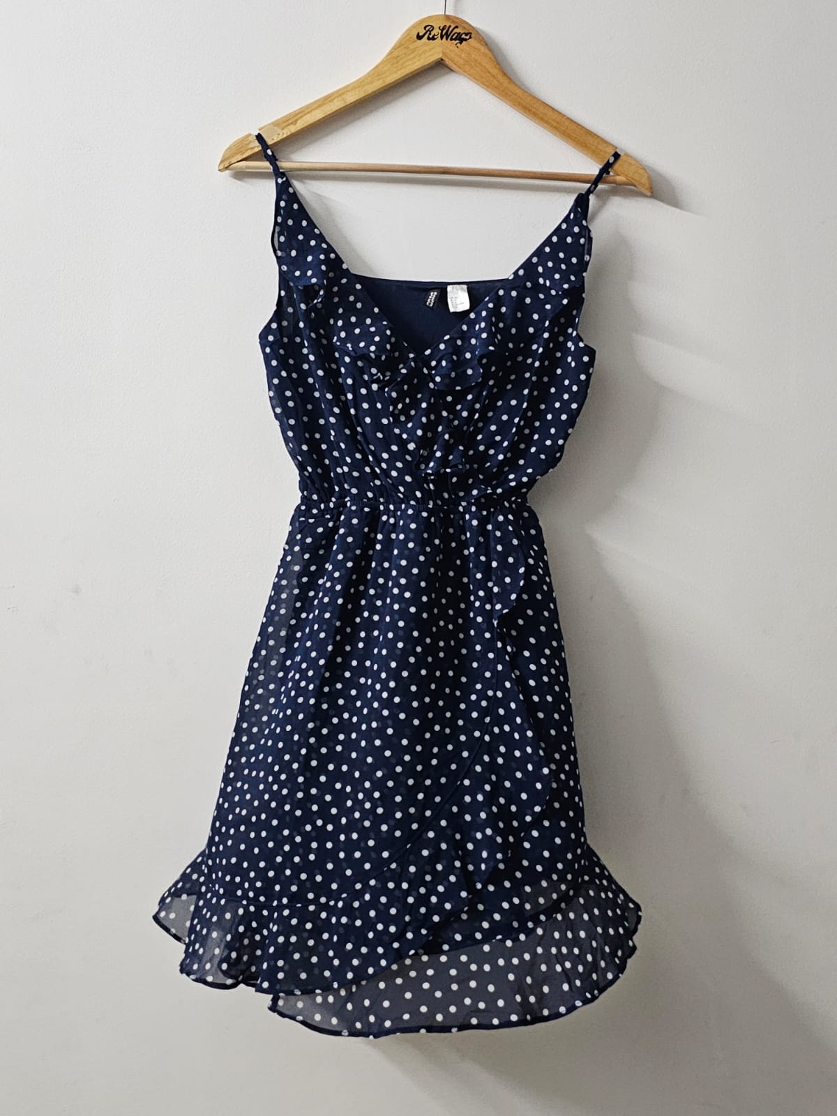 DIVIDED H&M Women's Blue Polka Dotted Dress - S Size
