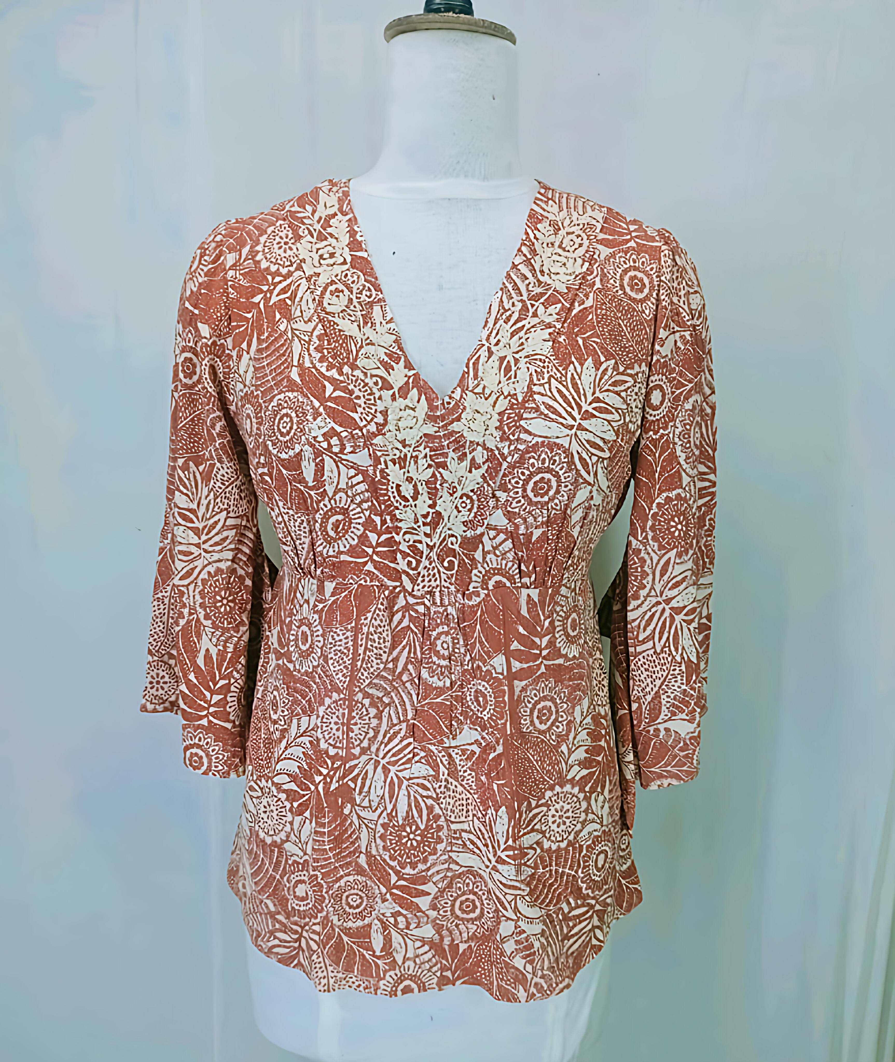 Bombay Boutique Collection Women's Neck Embroidery Pink Top - L Size