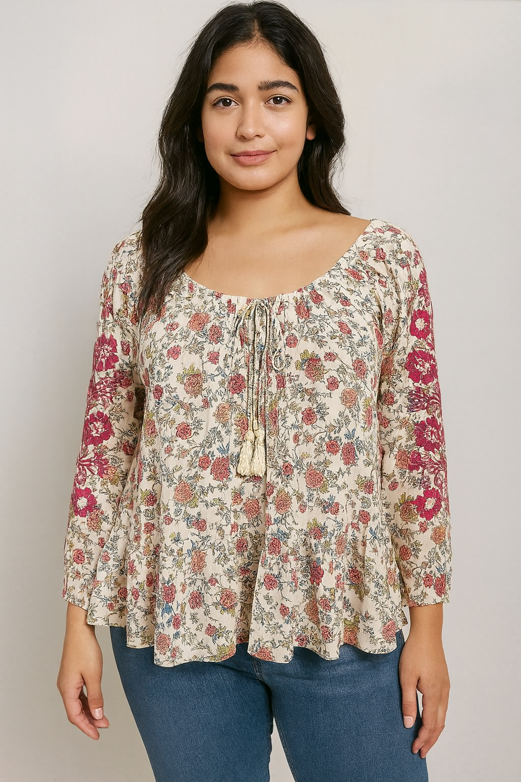 🥀 Very Unique Style Top🥀 Embroidery over Sleeves 🥀 Strings at Front 🥀 Fabric - Rayon🥀 Size- 40-42 (L-XL)