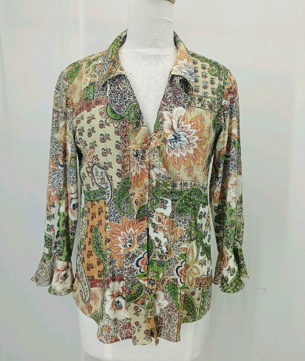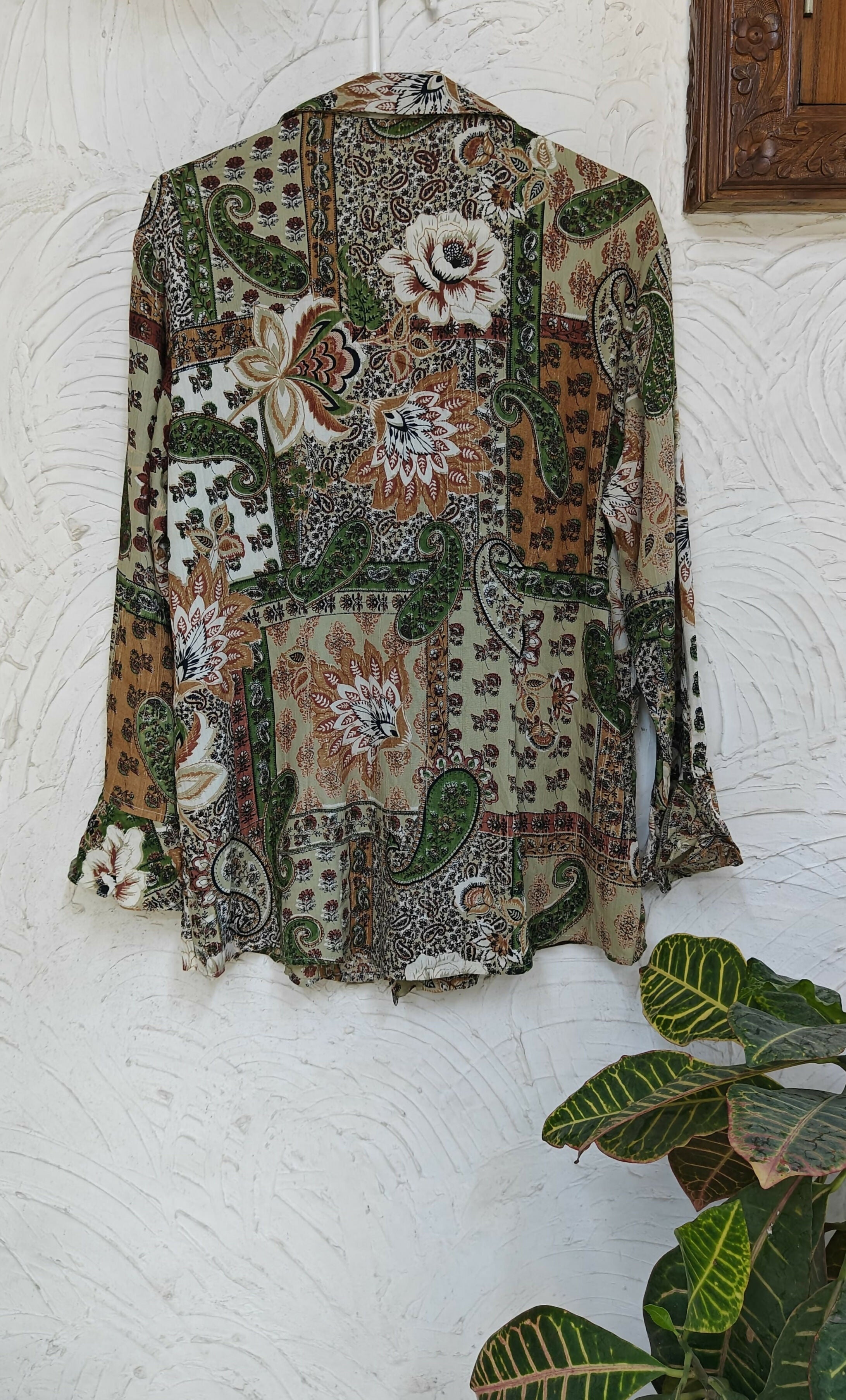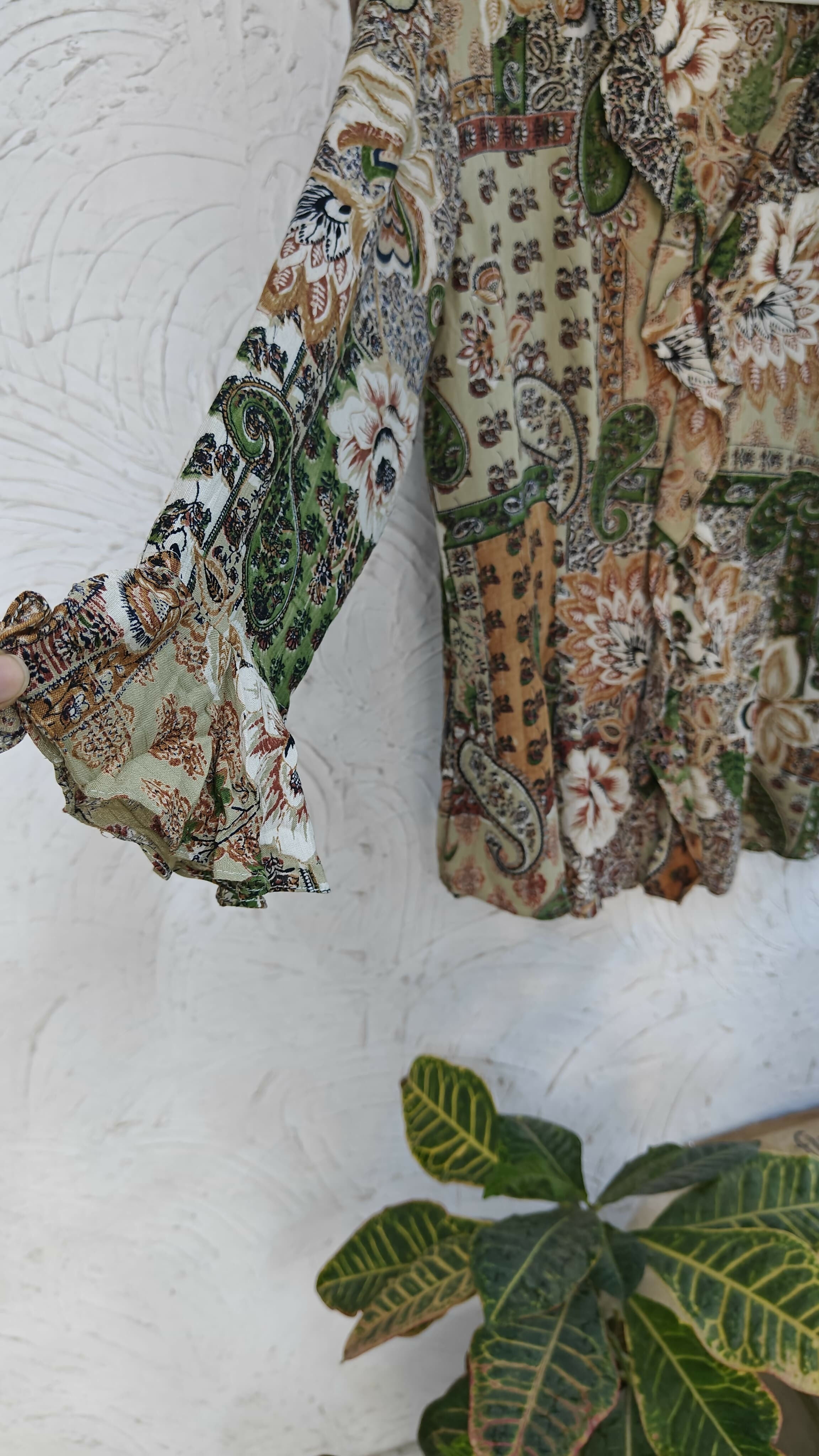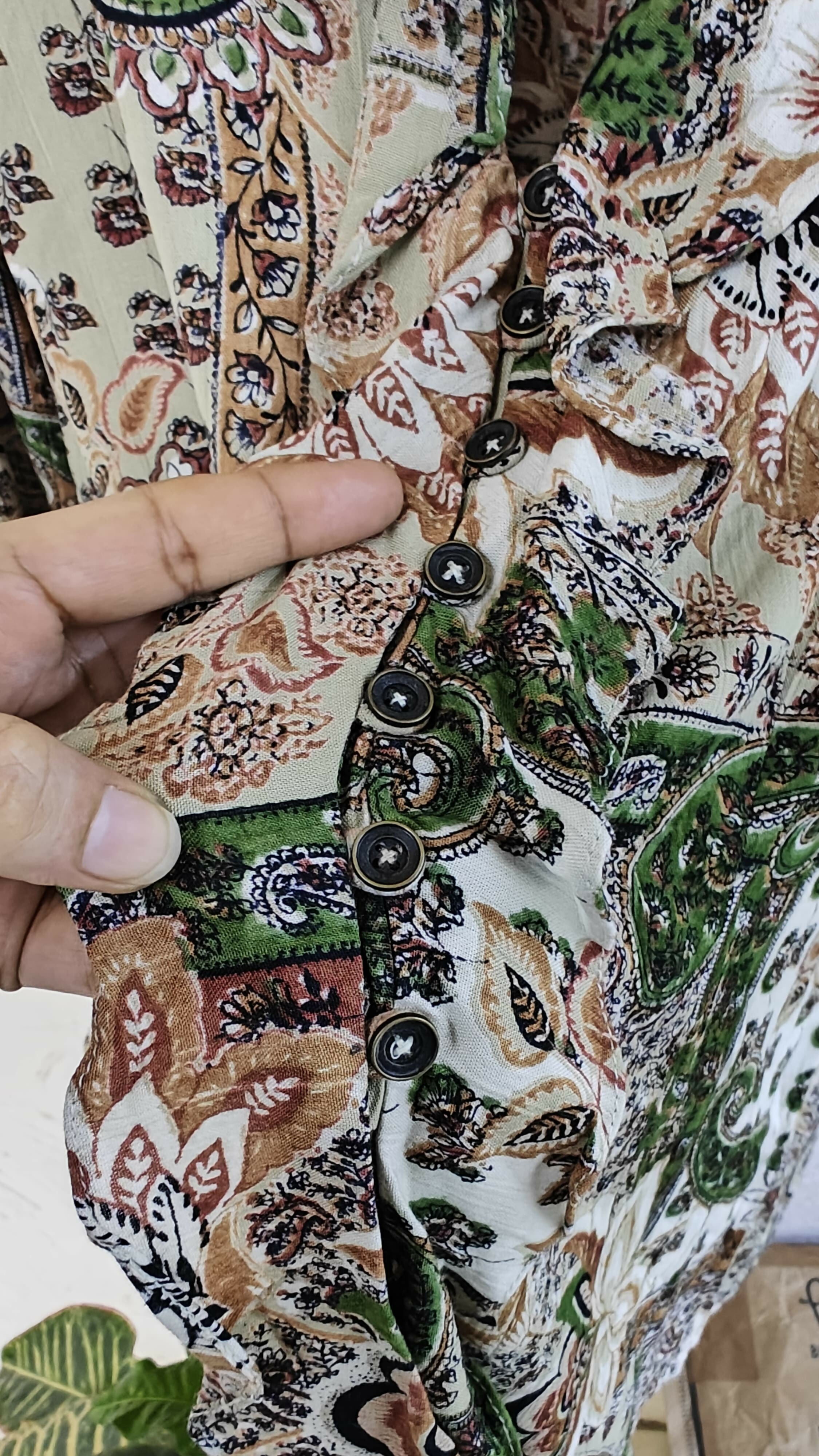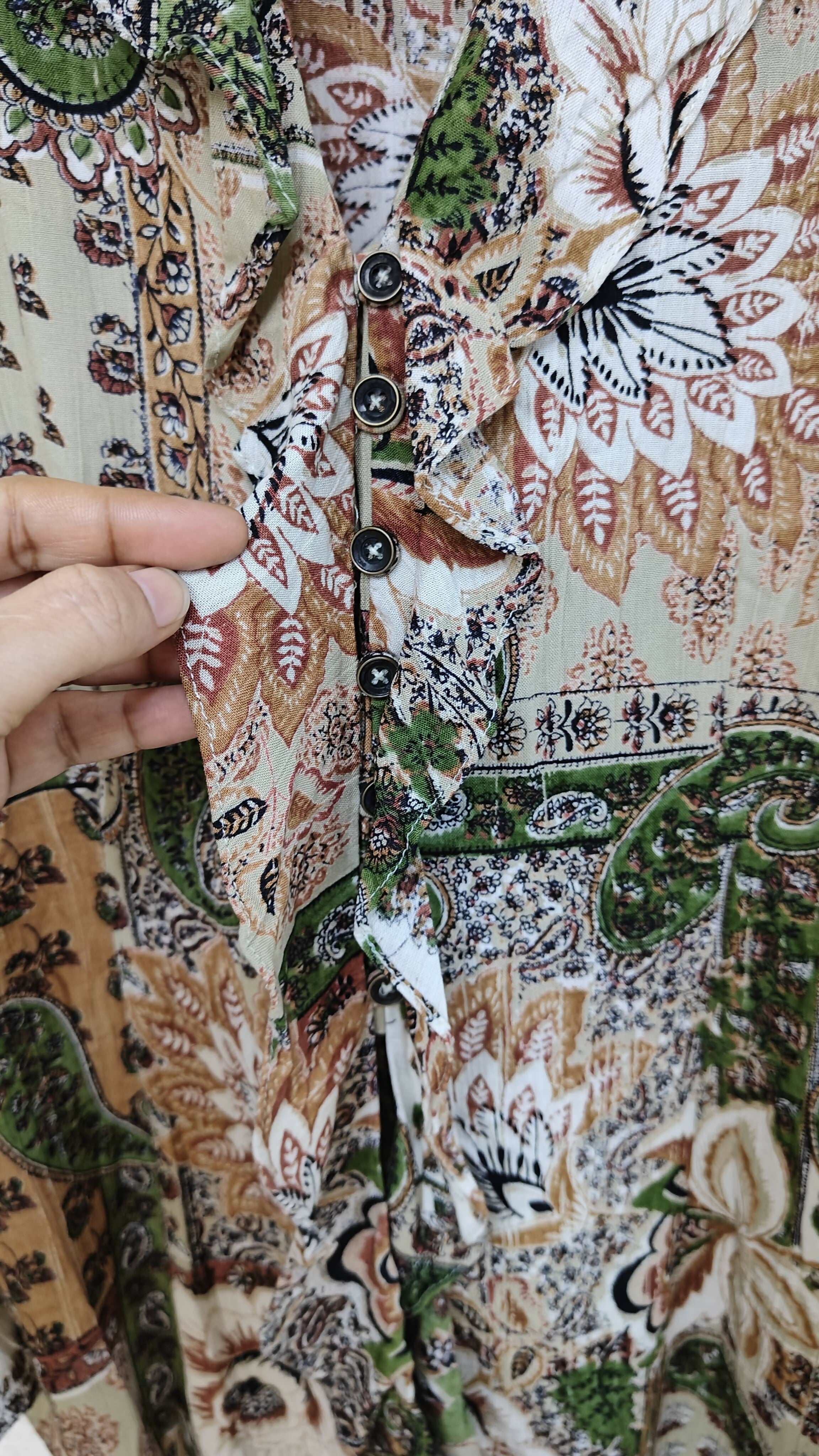 ๐ฟ๐ Extremely beautiful & elegant Ruffled Shirt Style Top๐ฟ๐ Beautiful Olive & Wooden Brown Shadeย ๐ฟ๐ Front Metallic Buttons & Ruffled...