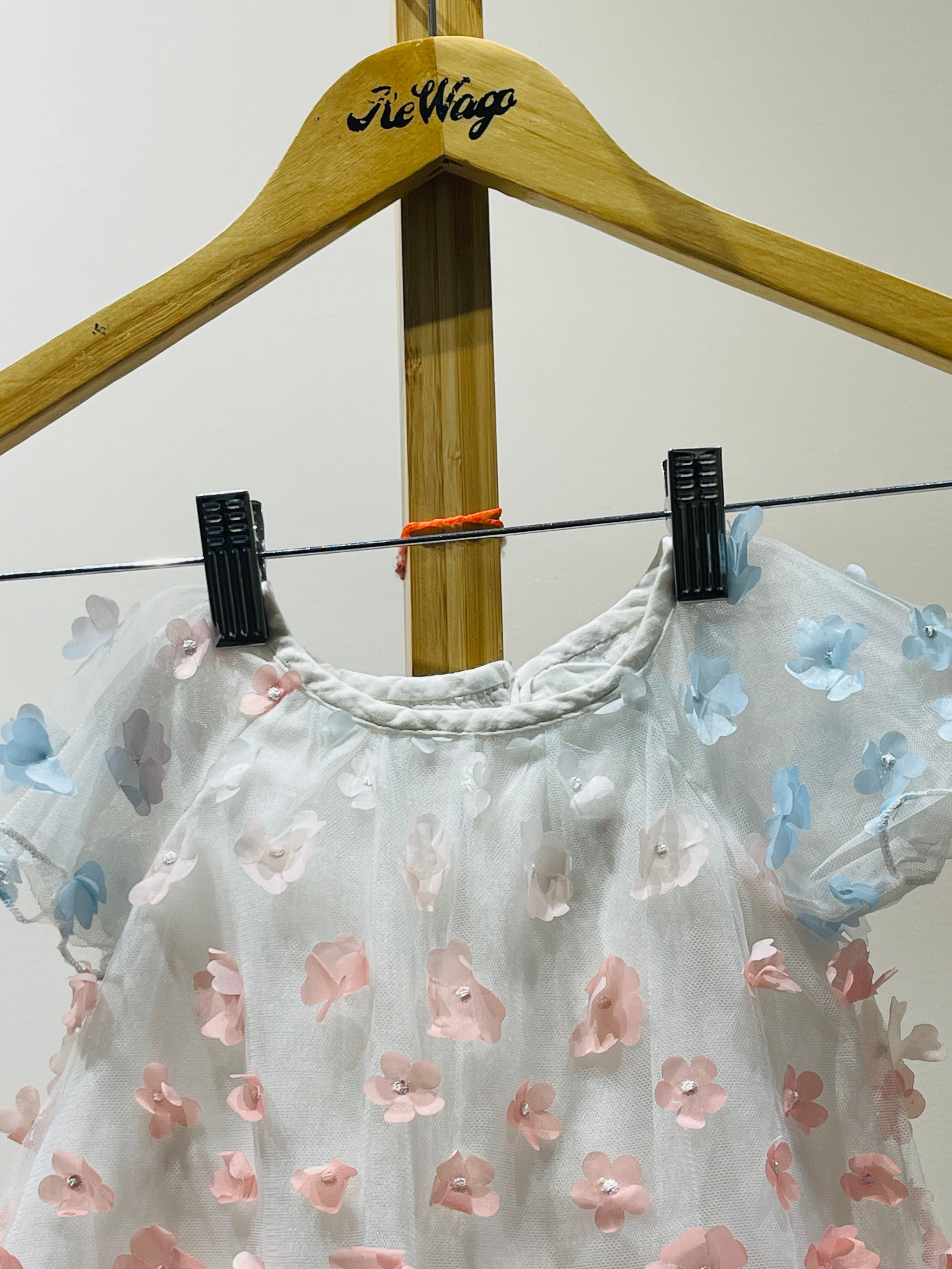 HOP BABY Kid's Girl's Flower White Dress - 6-9 Months