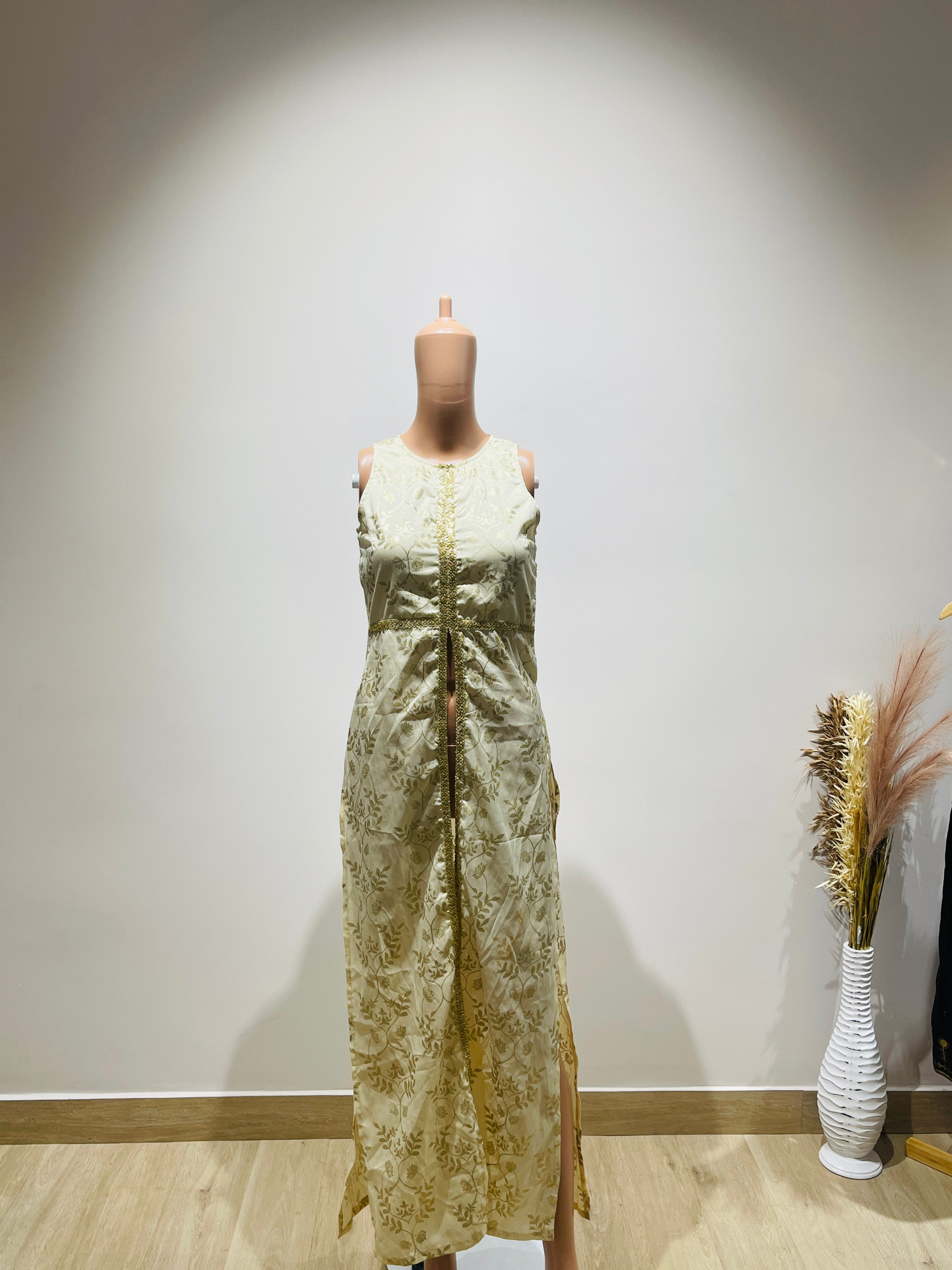 INDYA Womens Golden Floral Printed Kurta - XS Size