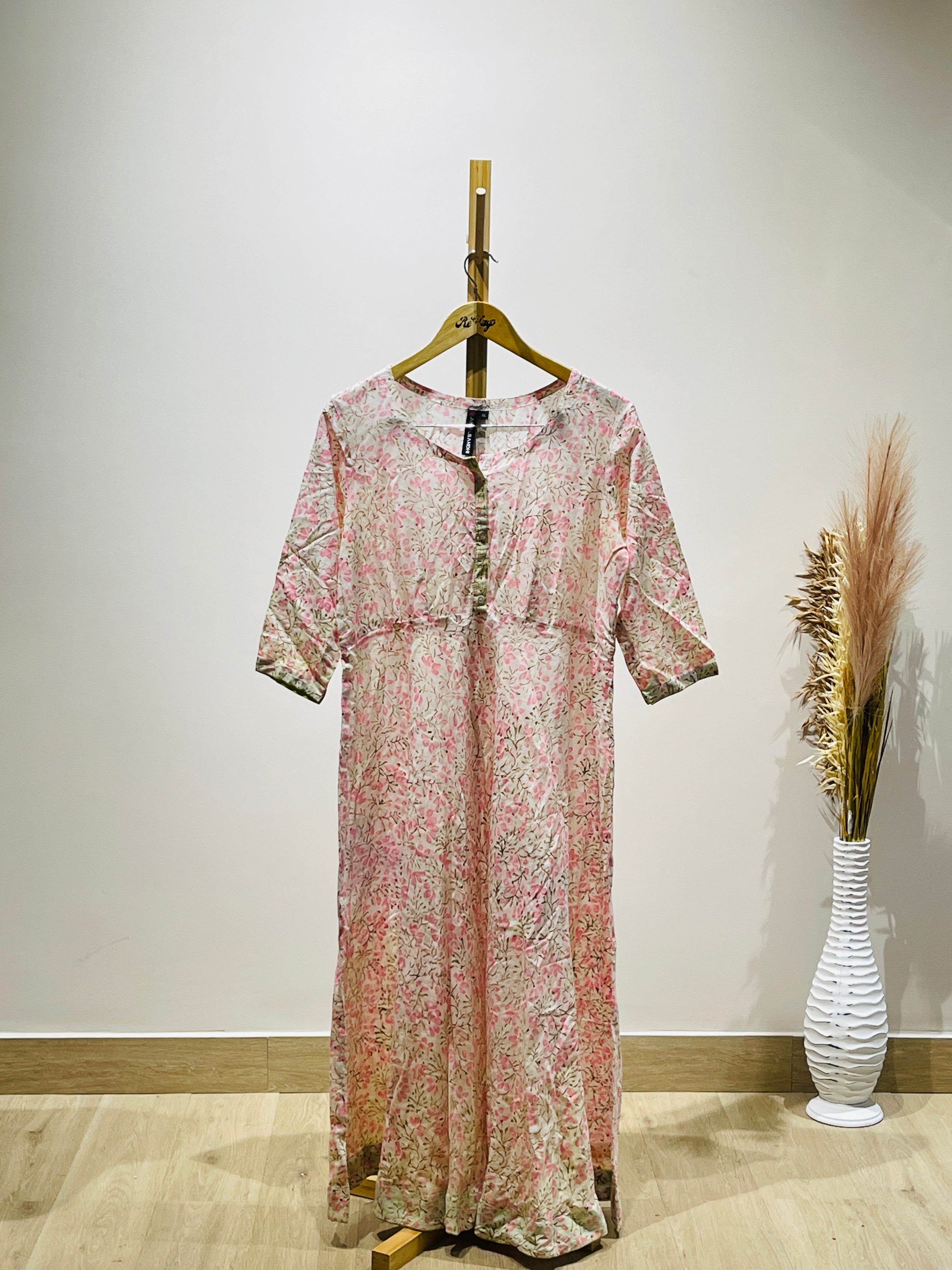 JUGALBANDHI Womens Floral Printed Pink and White Kurta - XL Size