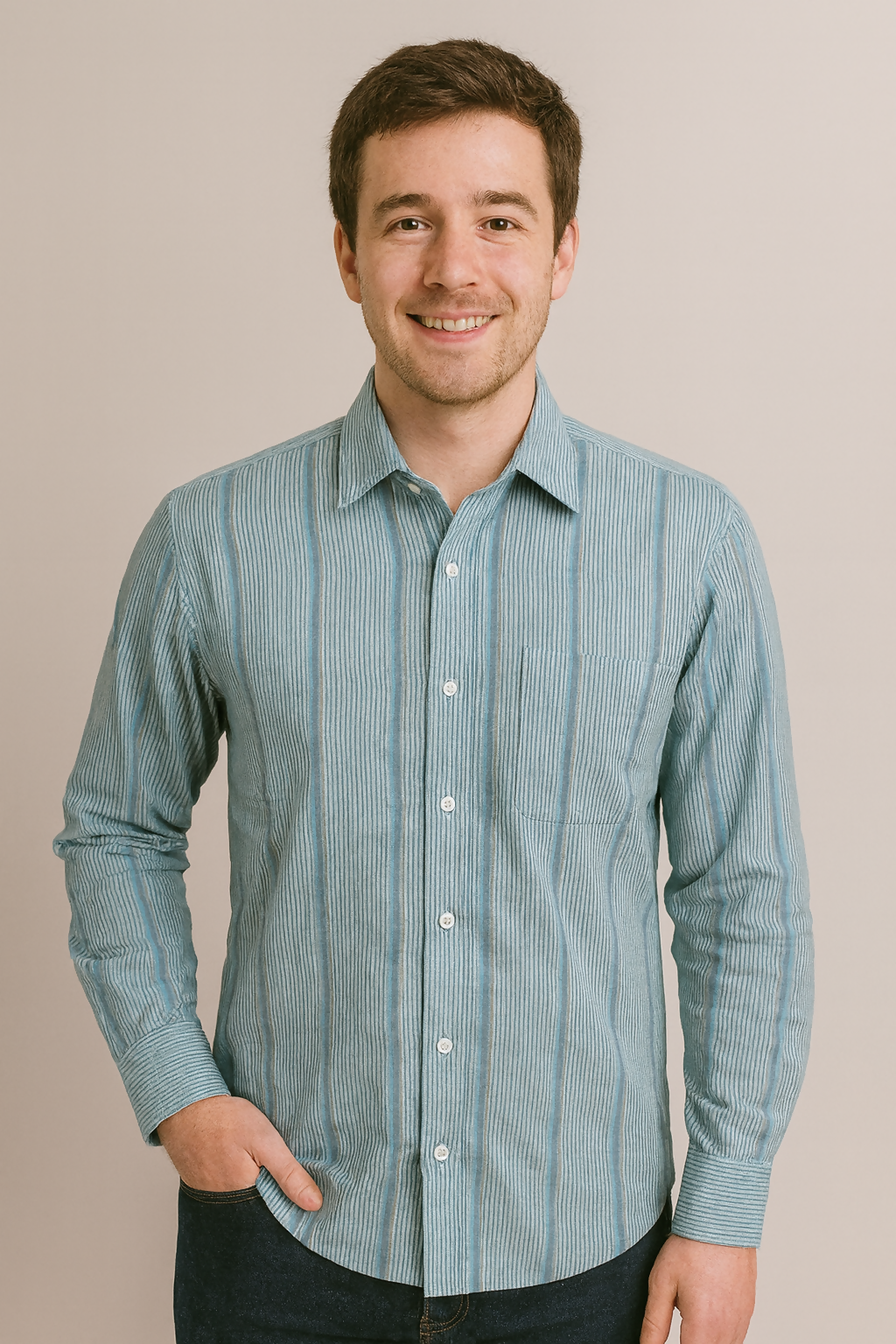 Men's Casual Blue Shirt - L Size