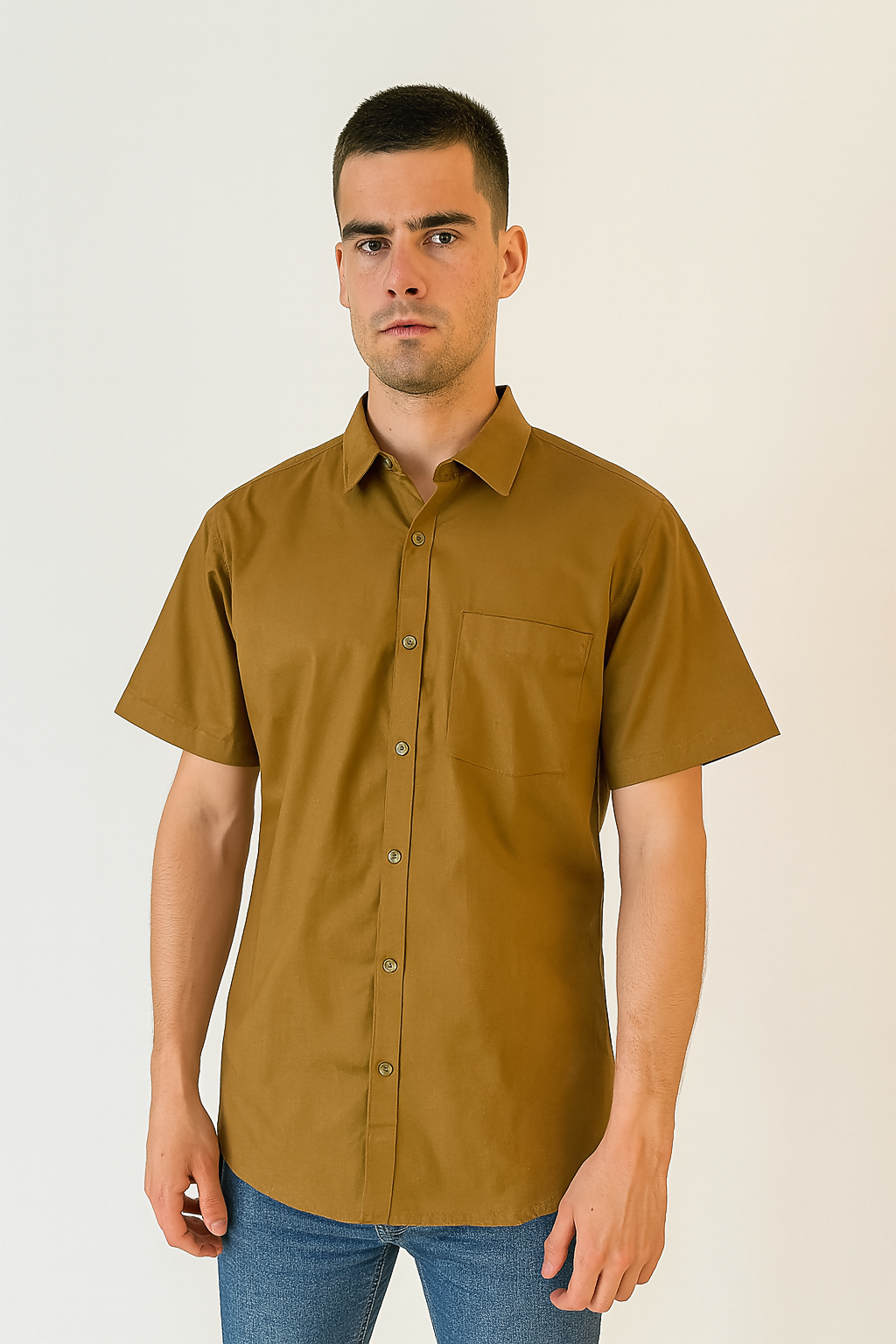 Men's Casual Cream Shirt - L Size