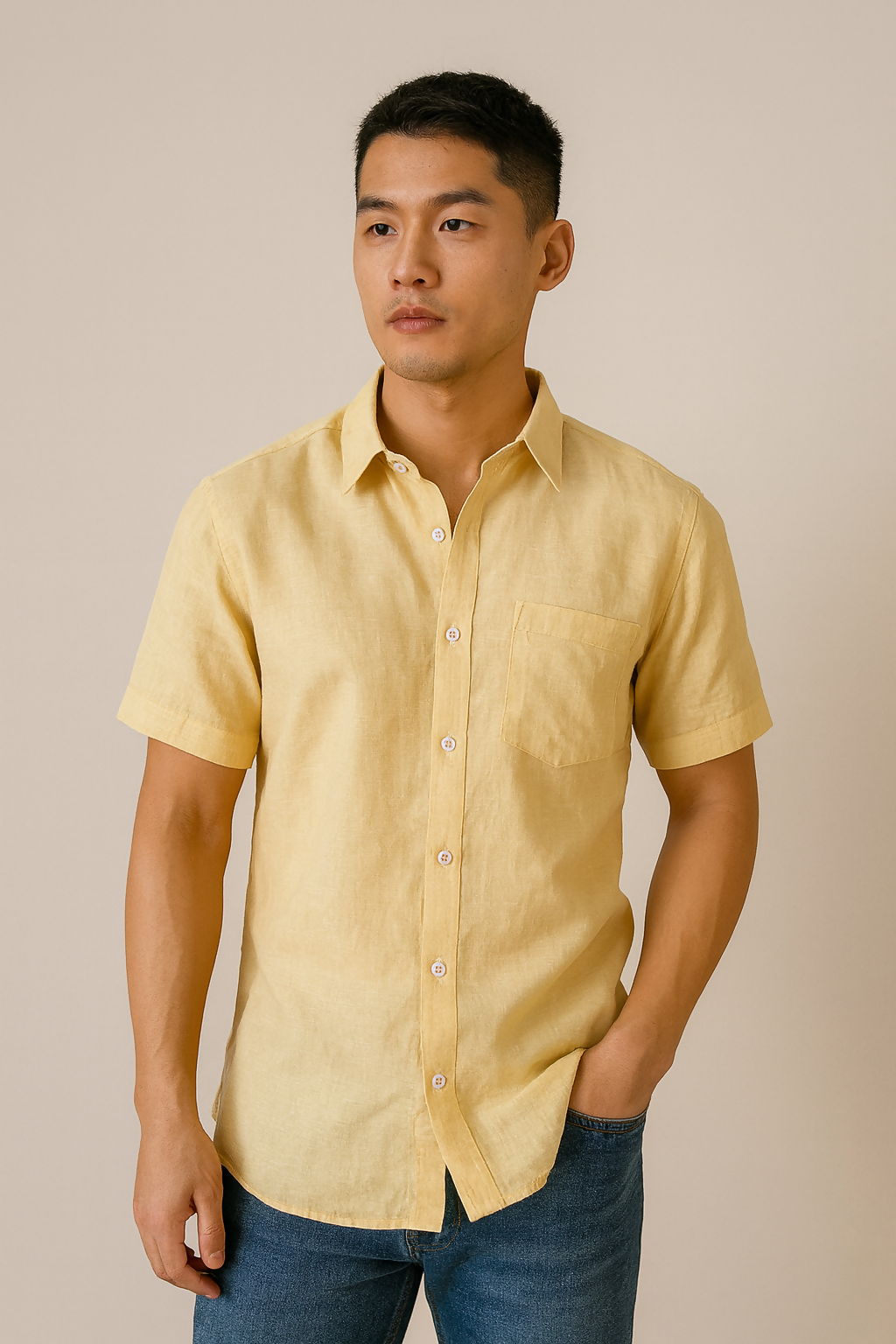 Men's Casual Yellow Shirt - L Size adds a pop of brightness to your wardrobe with its vibrant hue. Lightweight...