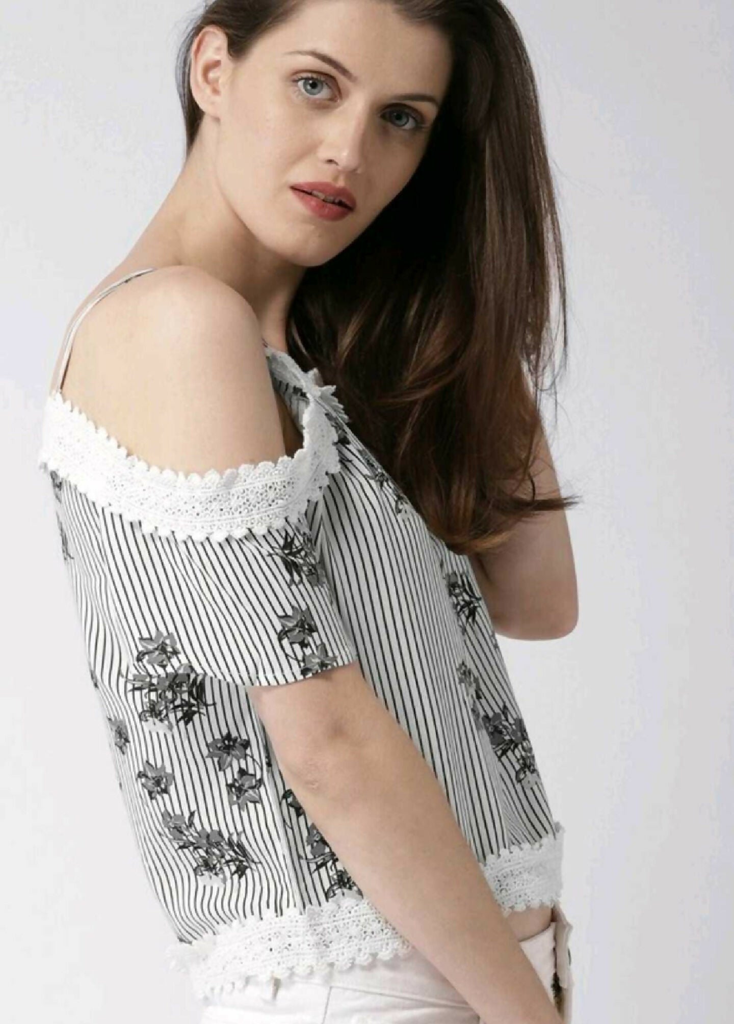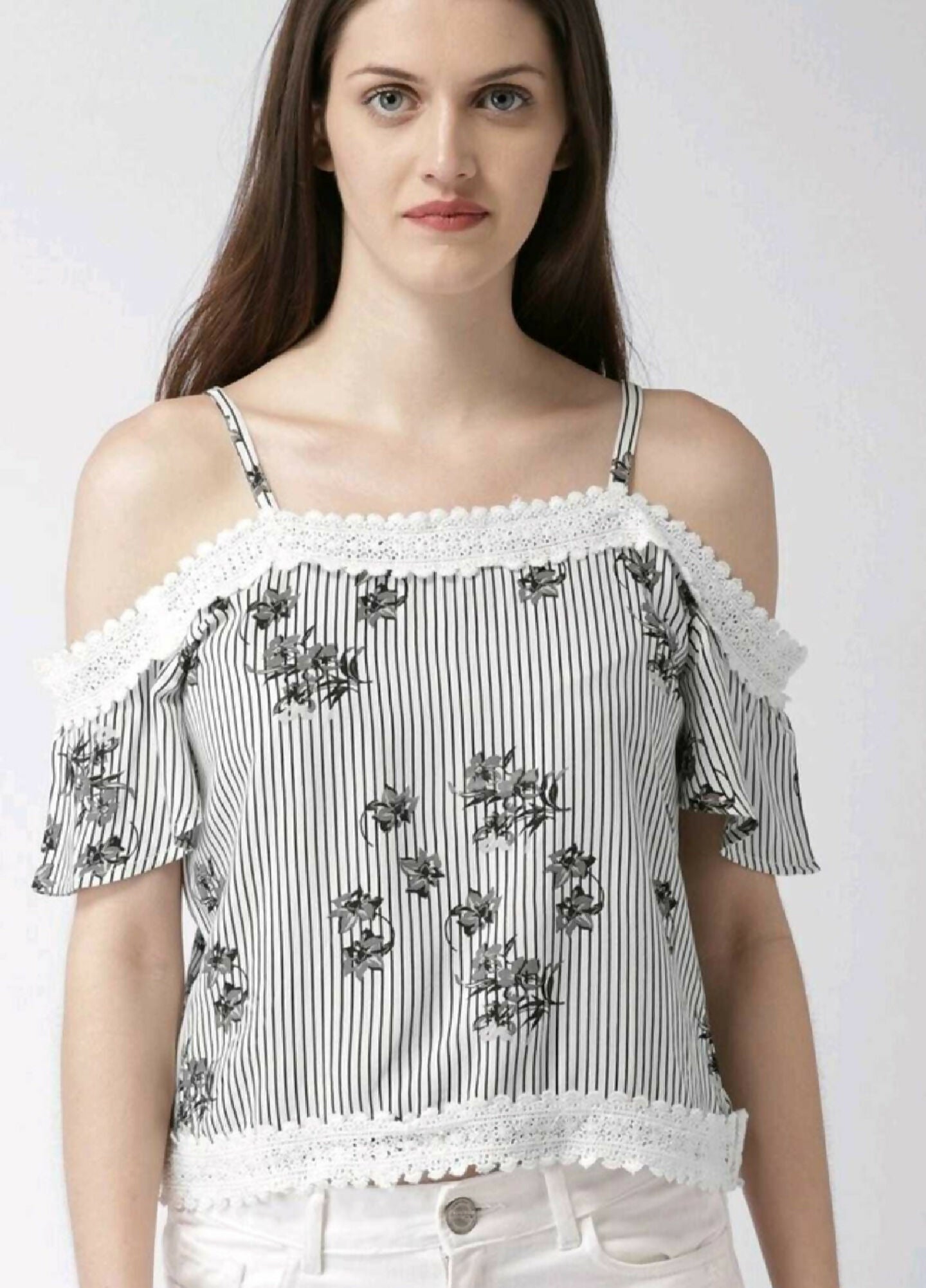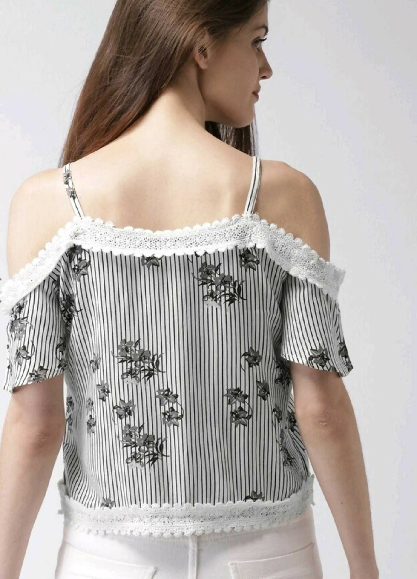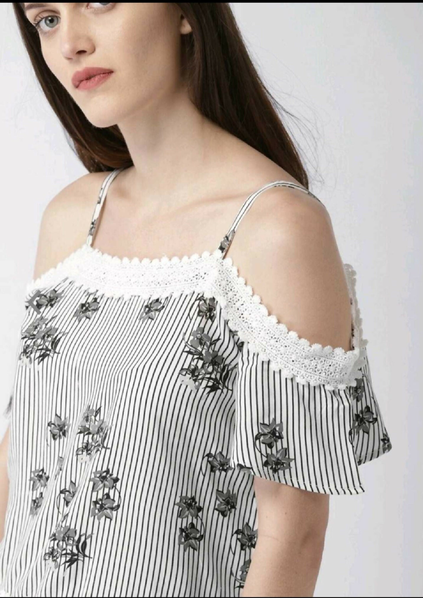 B&W Striped off-shoulder top with Beautiful Lace work around. Chest Size- 38 (M) 👉 Not even a single flaw. Just...