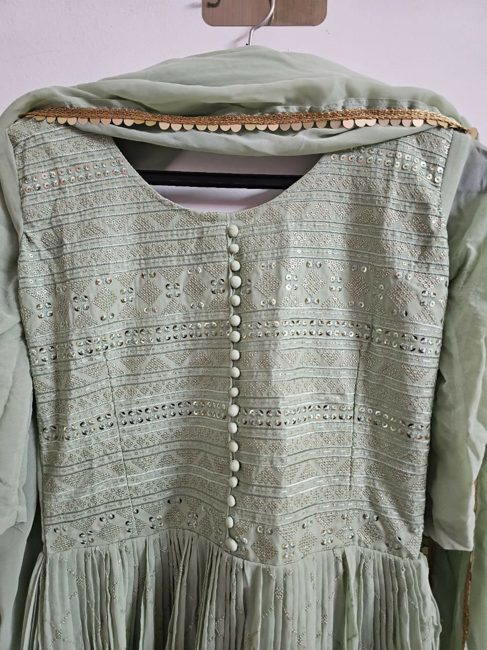 The Pastal Mint Green Party Wear Gown of XS-S size is a perfect match for parties well as both Ethnic...