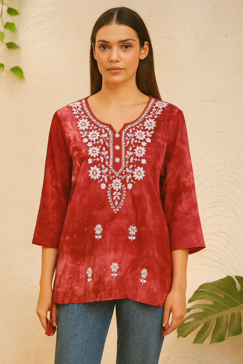 🍁 Beautiful tunic with White embroidery on Tie n Dye fabric.🍁 Chest Size - 36