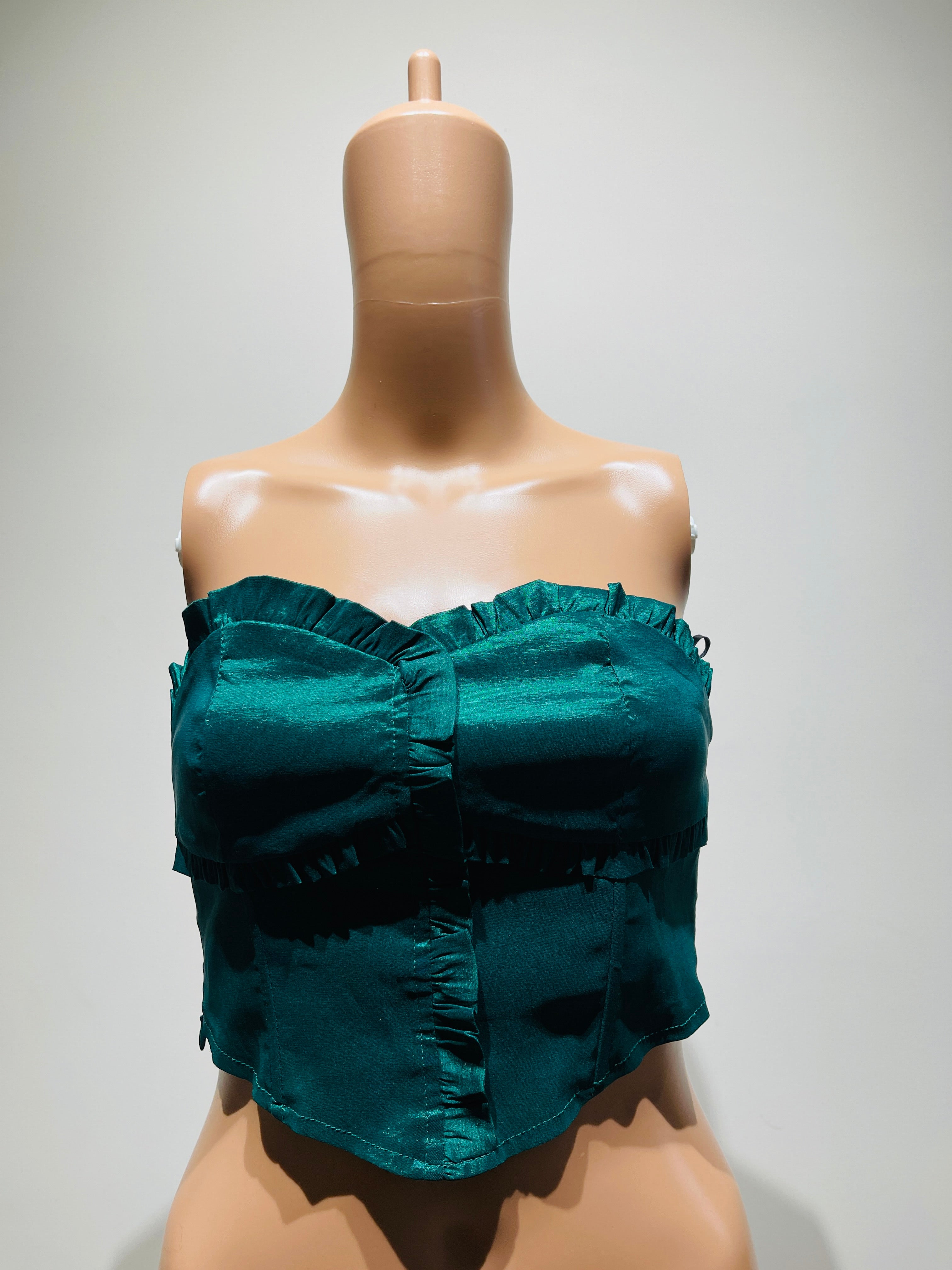 SHEIN Women's green corset crop top – S size, designed with a structured fit for a bold and flattering silhouette ...