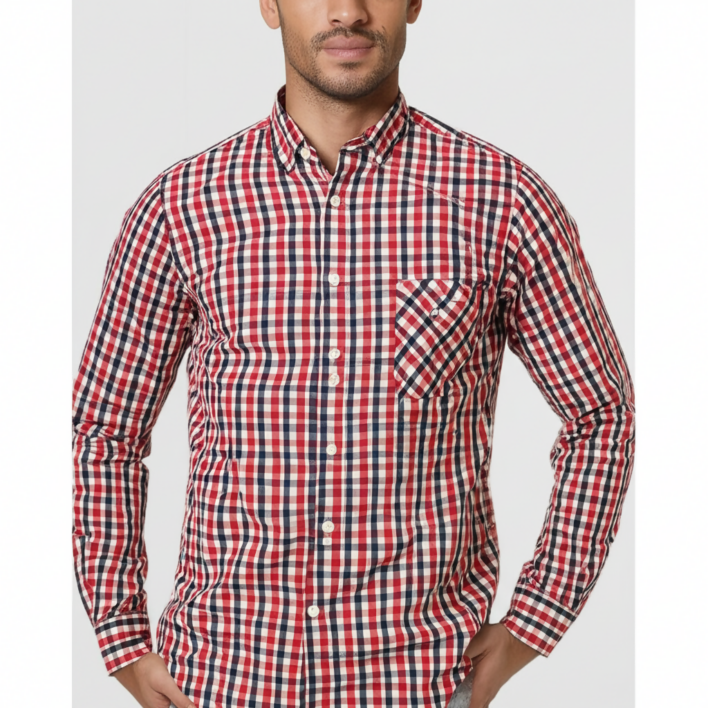 Shirt (MS02) for menAXCOT (M) red checks cotton