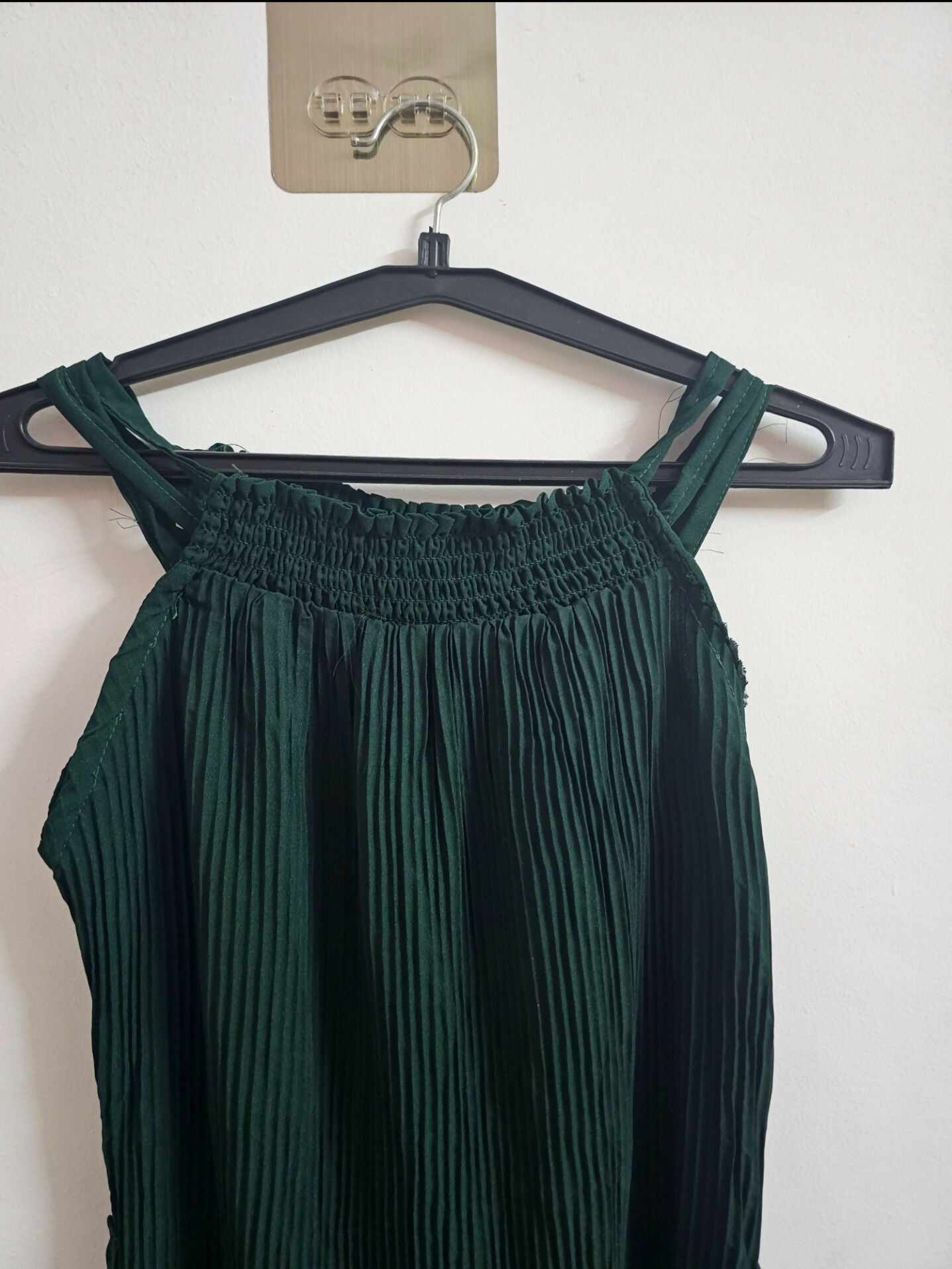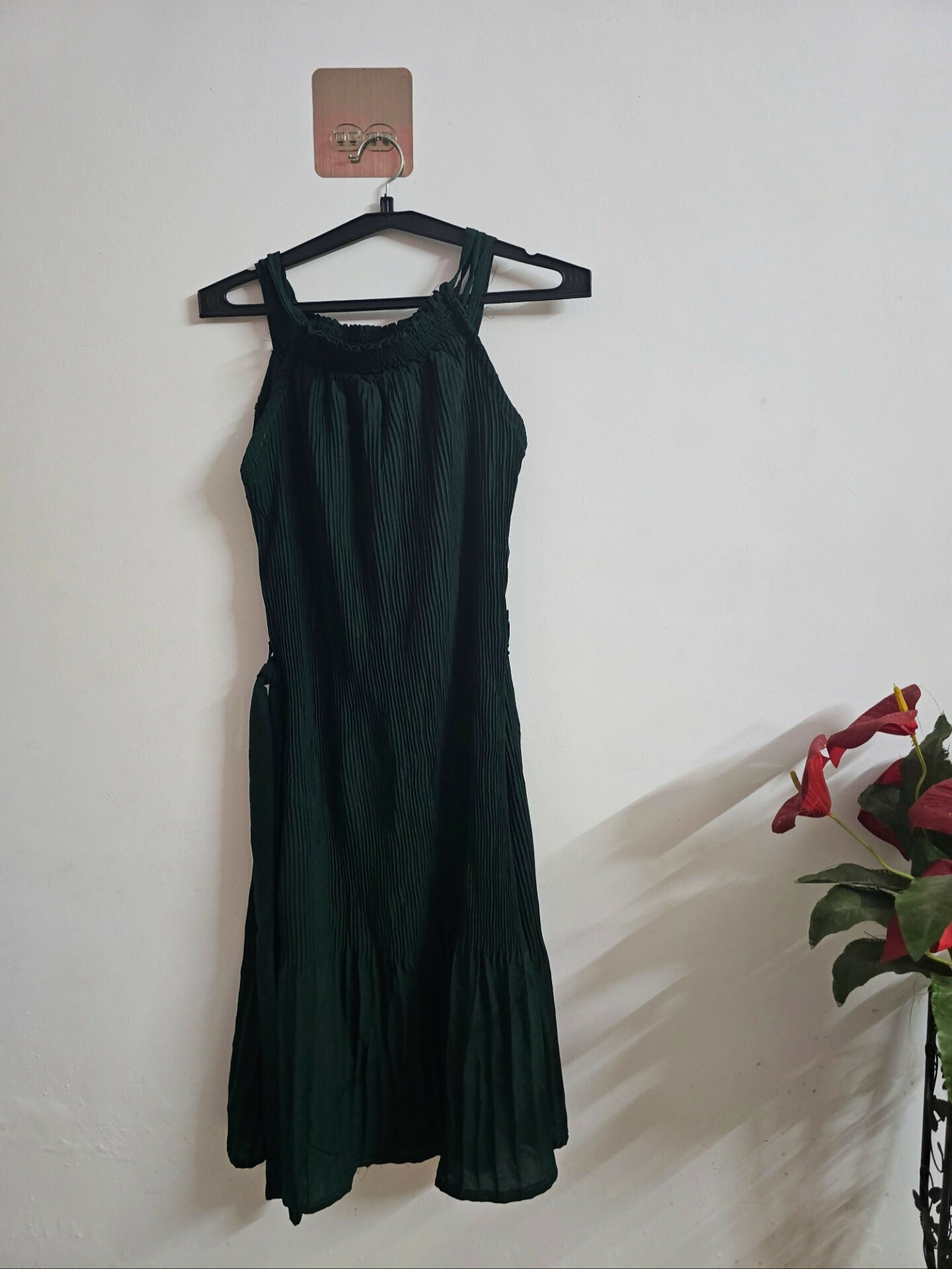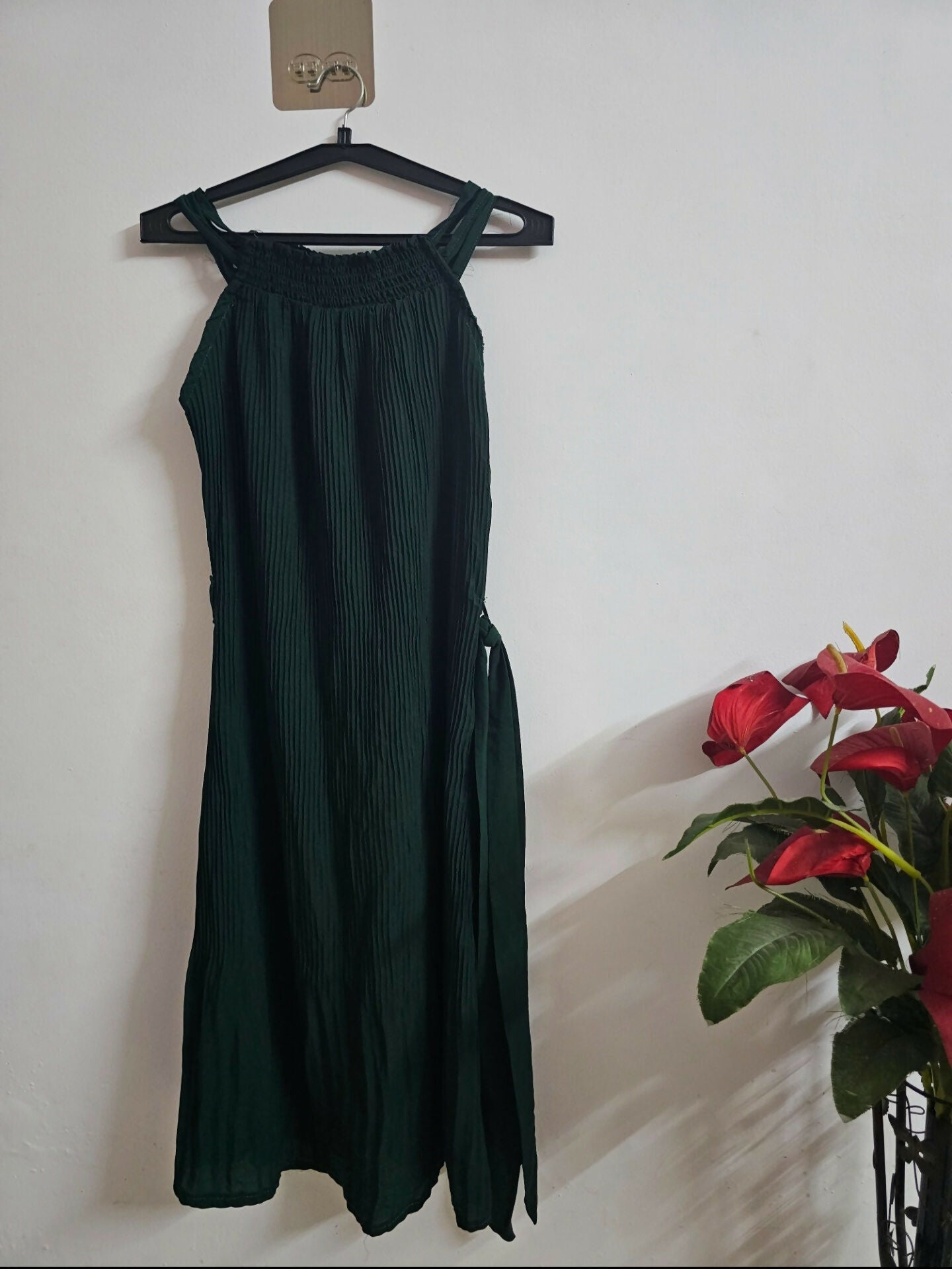 This Sree Narayana Collection Dark Green Striped Crepe Midi Dress of S size features a clean, timeless design making it...