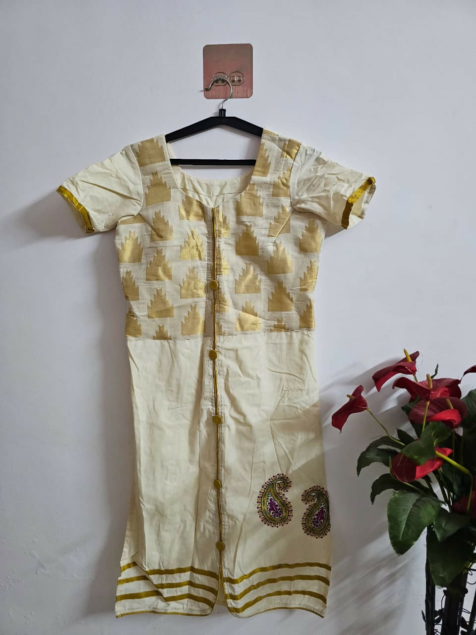 Traditional Wear Off White Kurtha with Pants of M size is perfect for both casual and Ethnic- Traditional occasions. The...