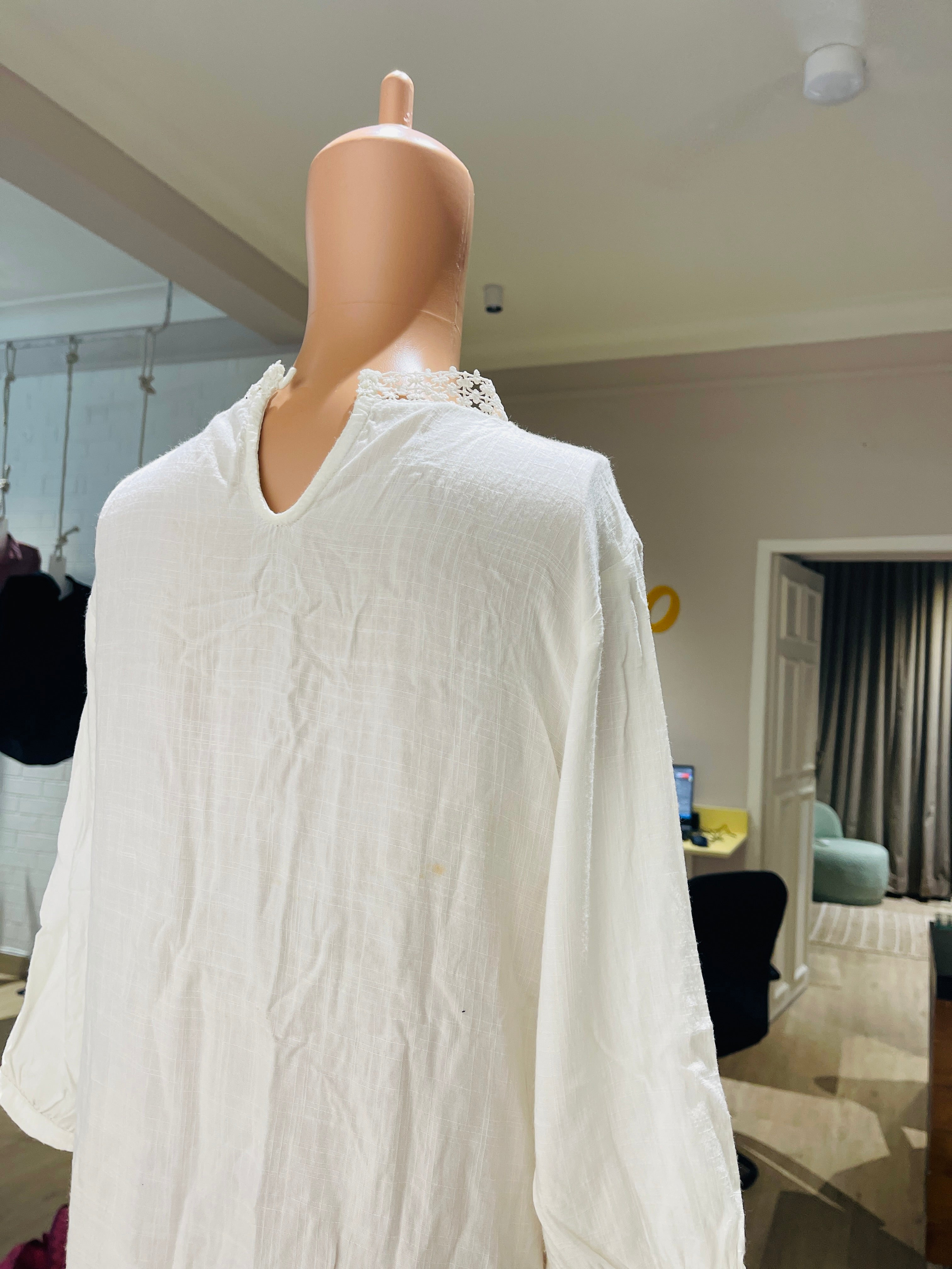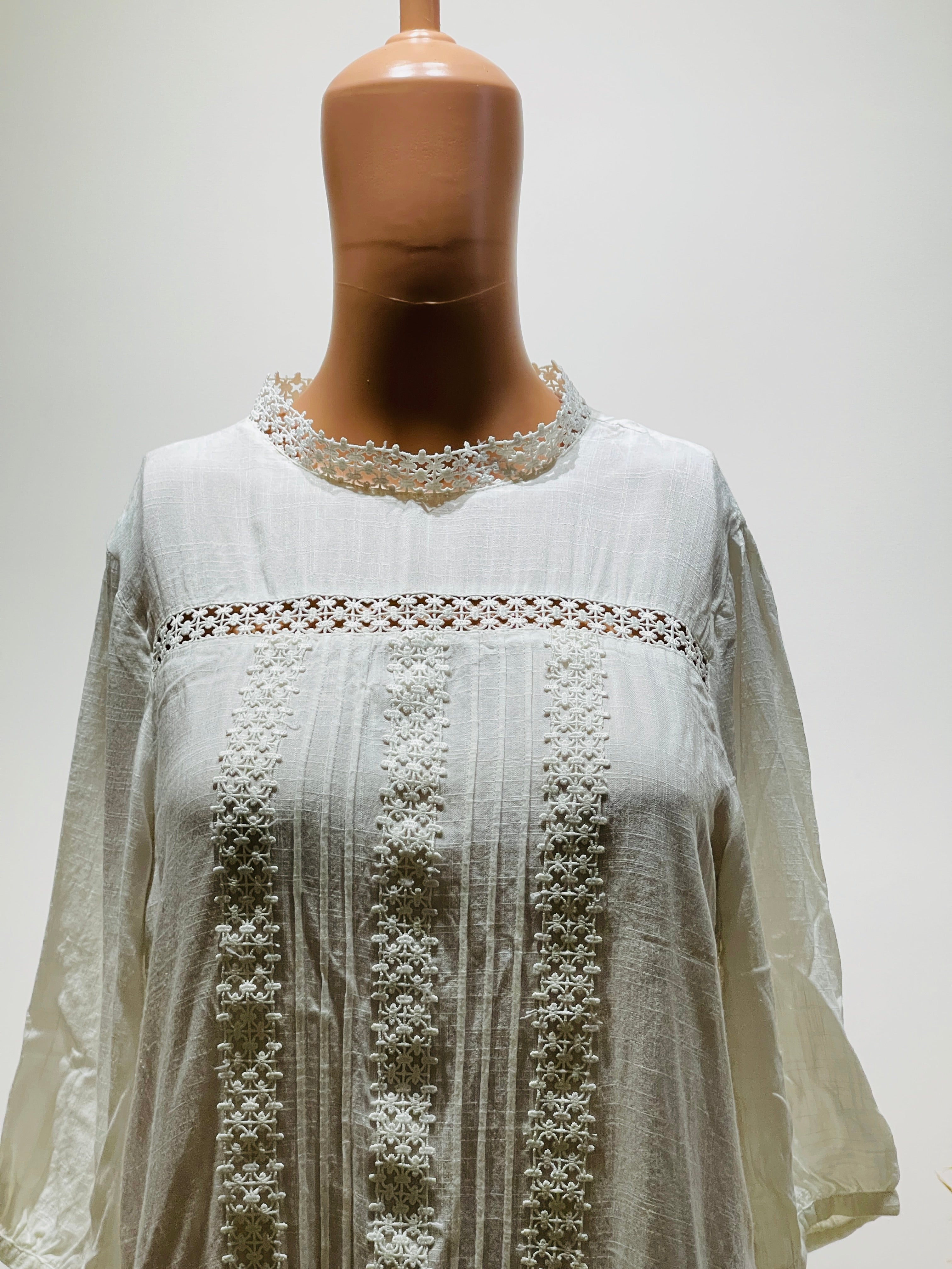 Women Embroidered Cotton Ethnic WhiteTop - M Size