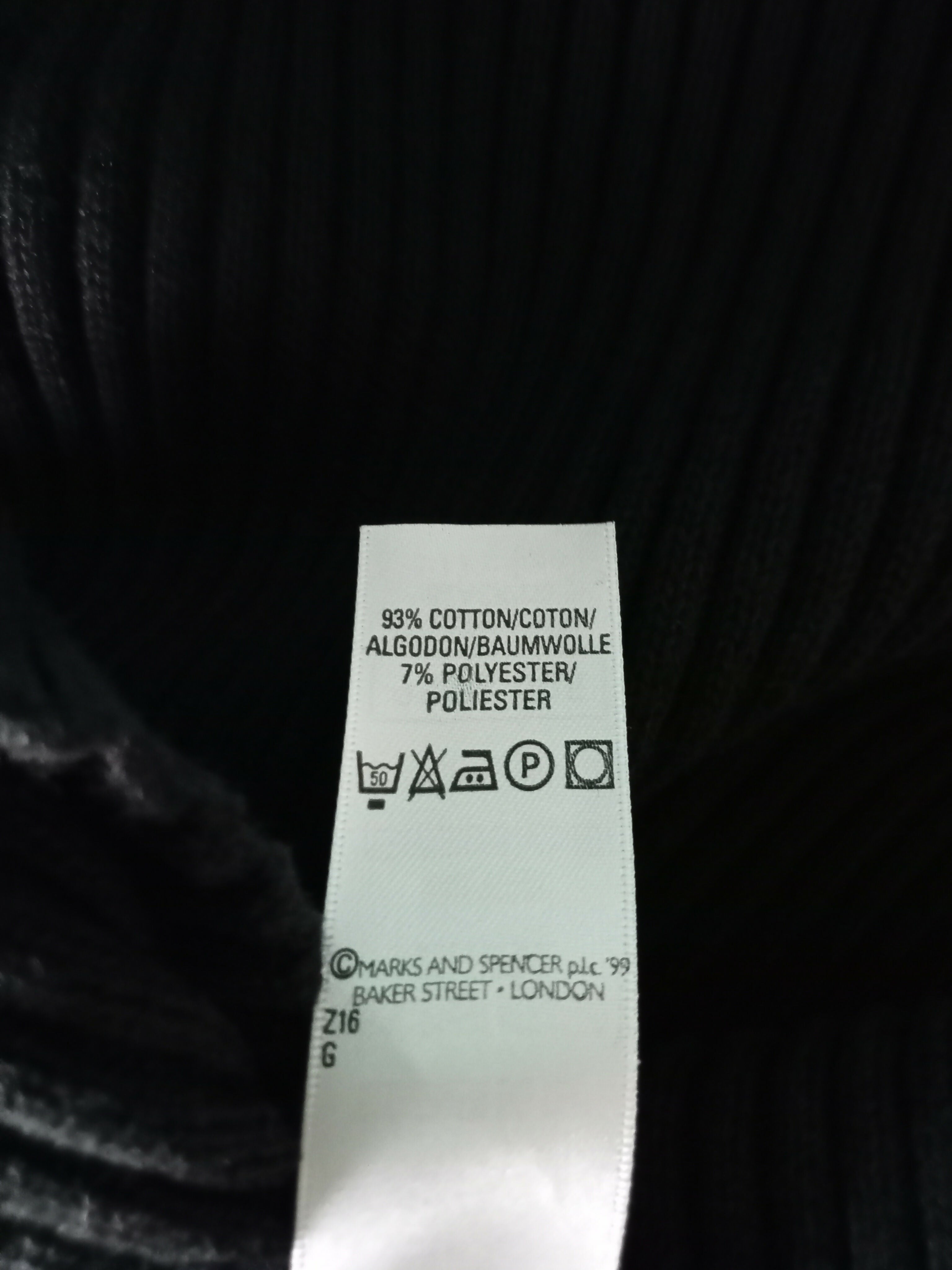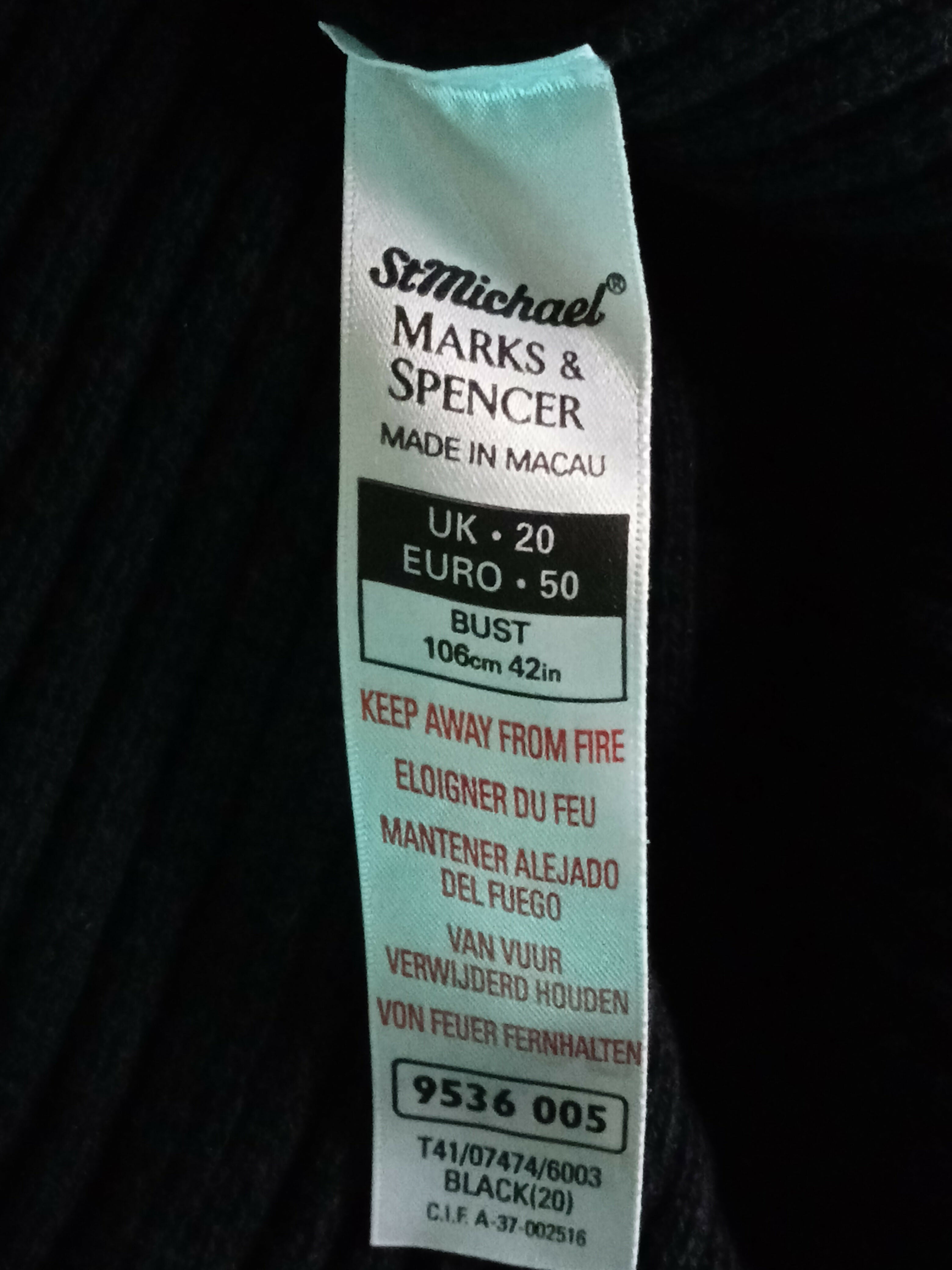 Black ribbed stretchy fabric. It should fit quite snug. The folded cuff is stitched like that to the sweater. Measurements:Chest width:...