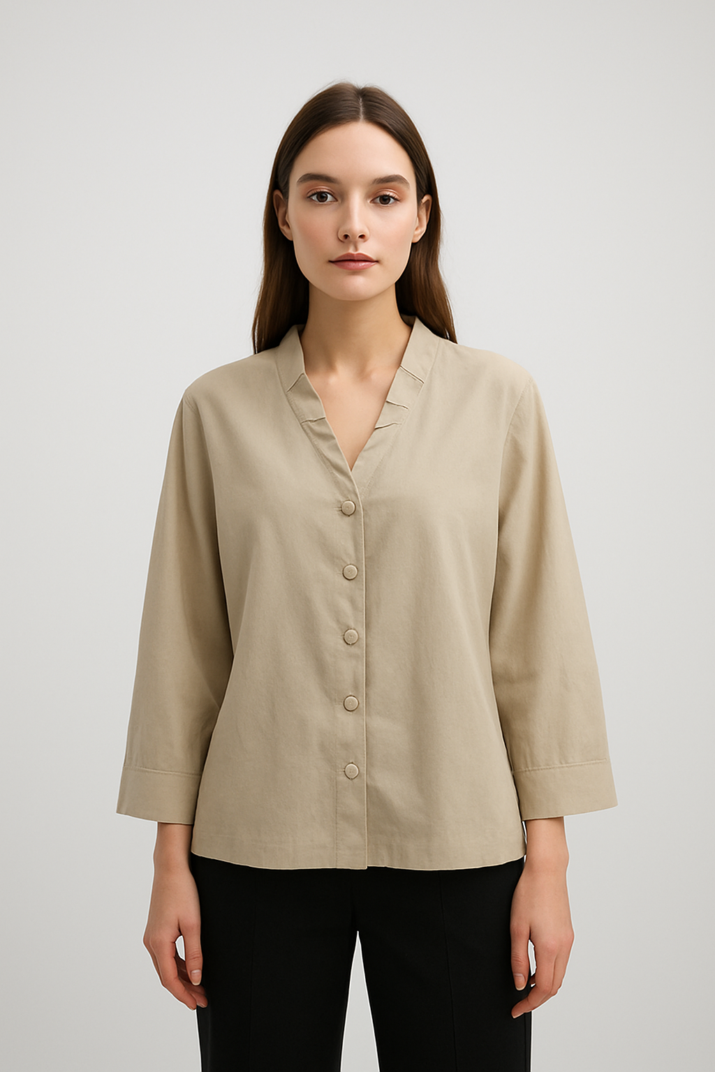 features a chic and versatile design with a flattering neckline and stylish button detailing. Perfect for casual and semi-formal looks,...