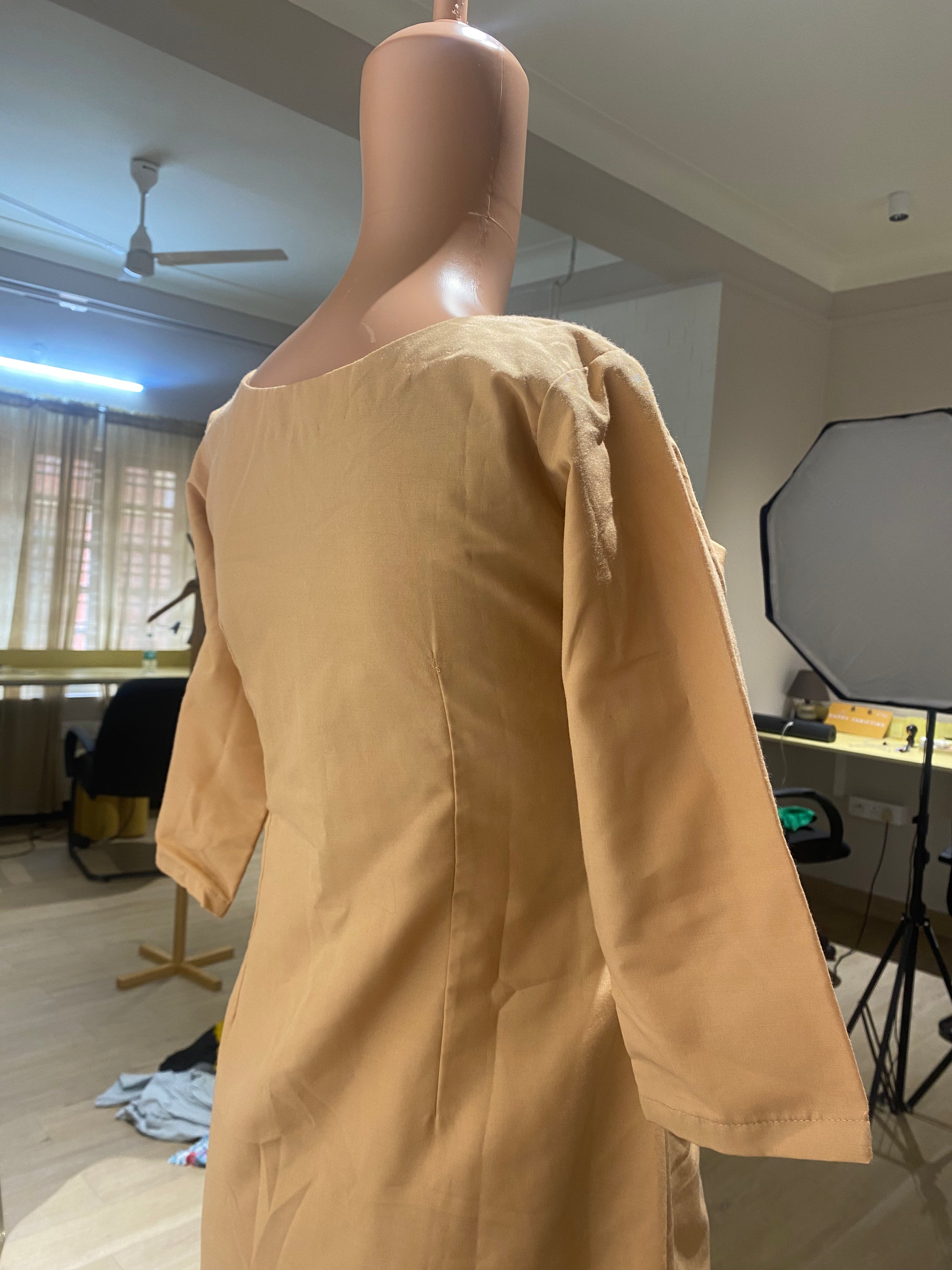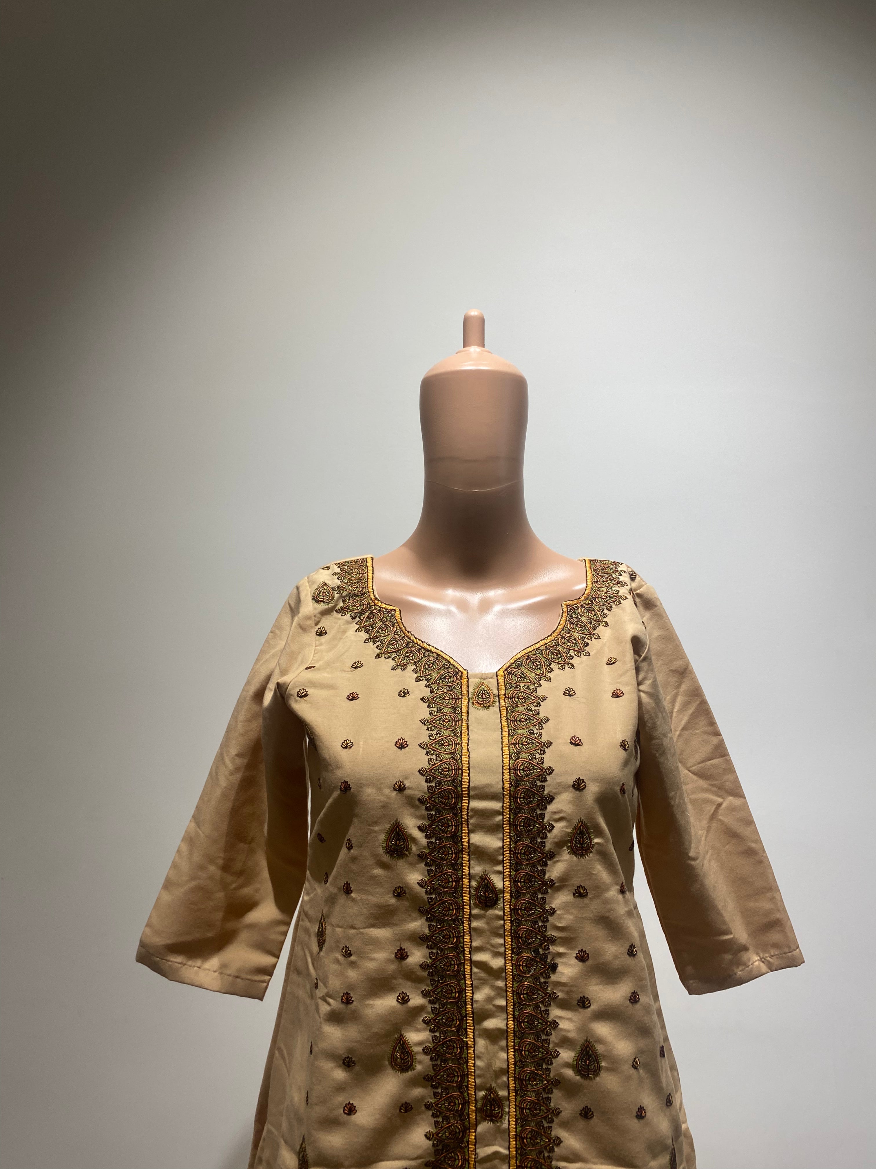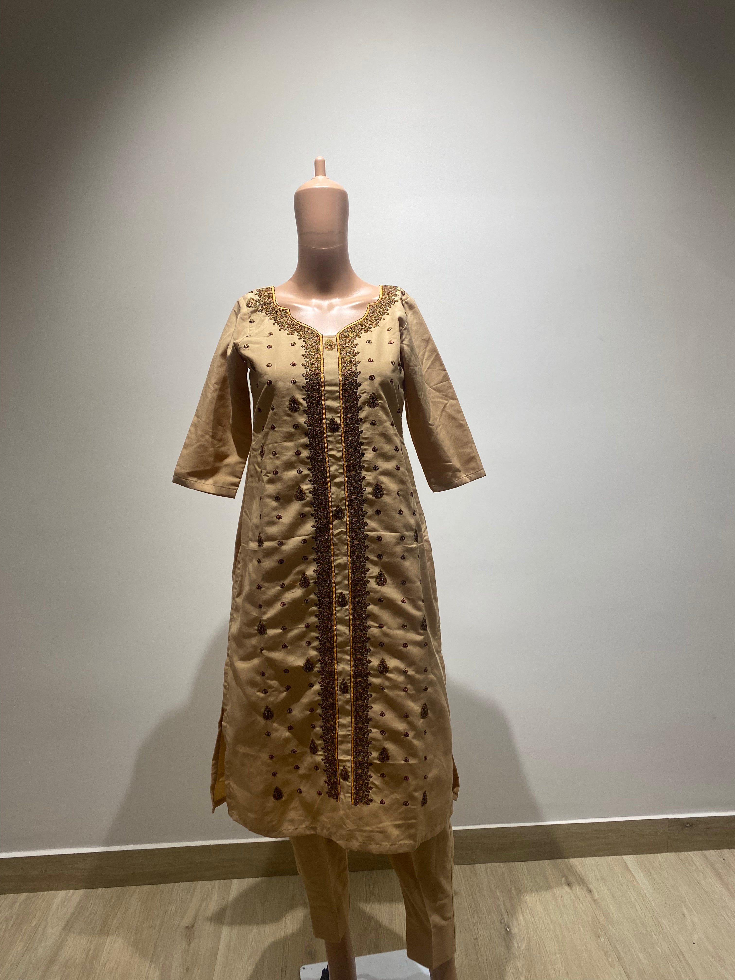 Women's Viscose Rayon Beige Kurta Pant Set - M Size