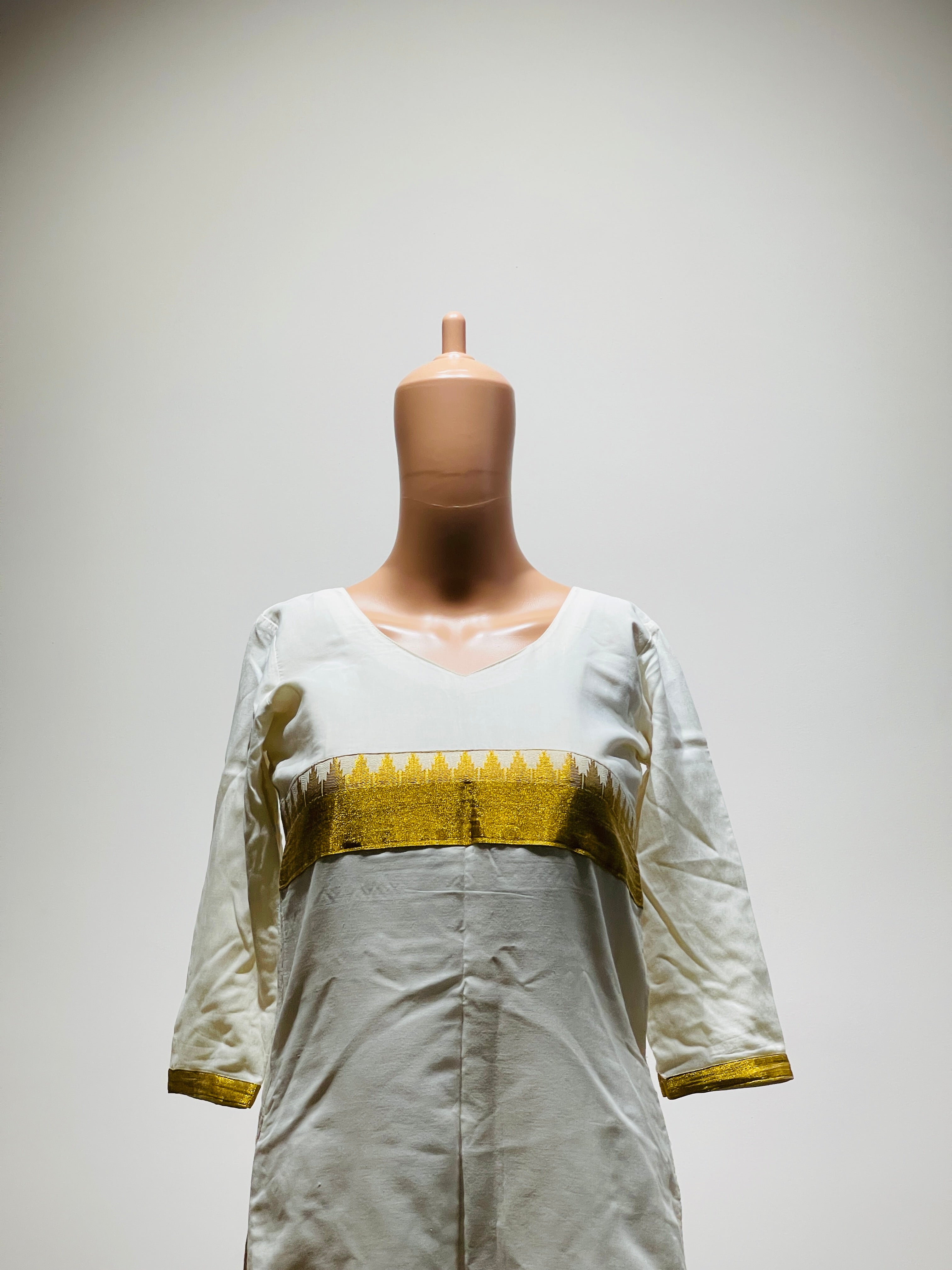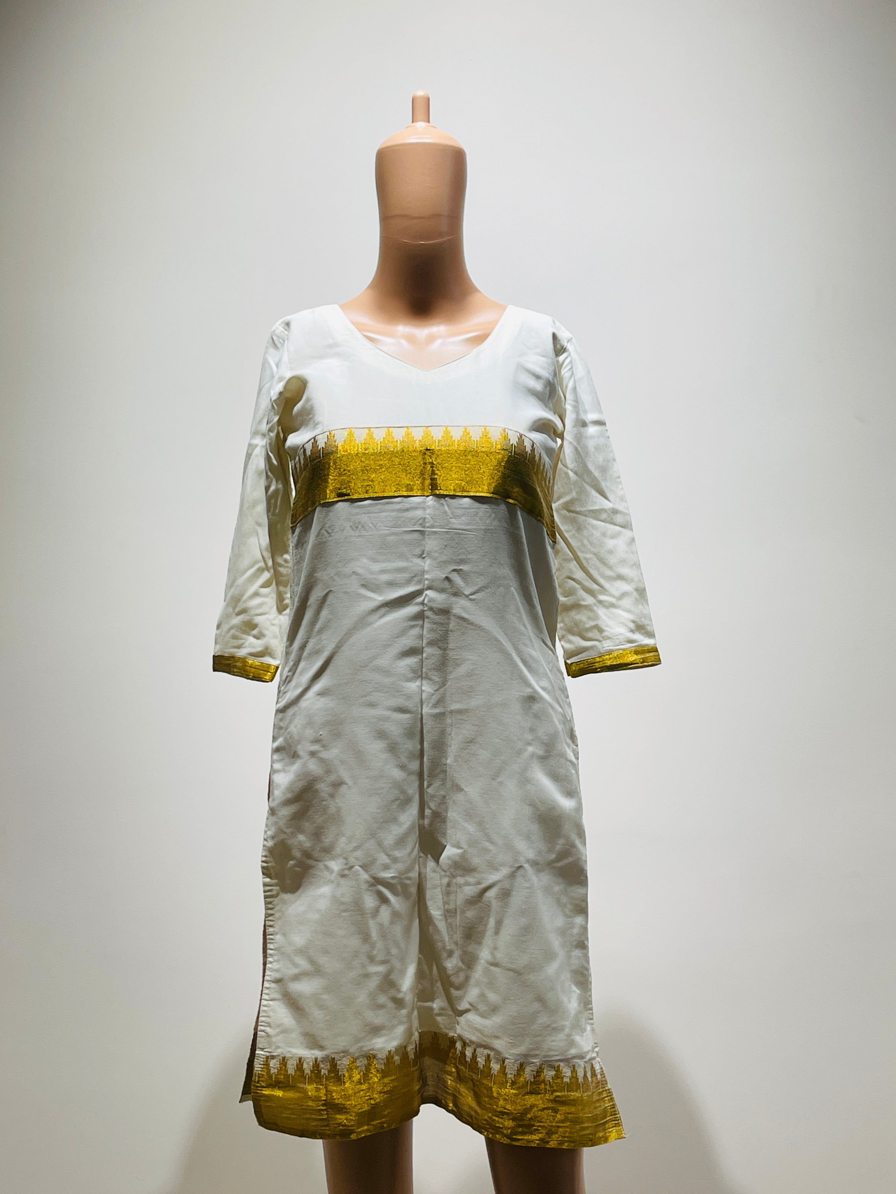 Womens White and Gold Kurta - XS Size